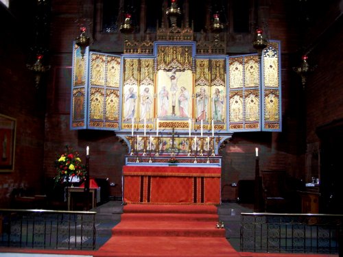 Designed by the firm of G.E. Grayson and Edward Ould and financed by Douglas Horsfall, this red brick church was built 1898-1900.